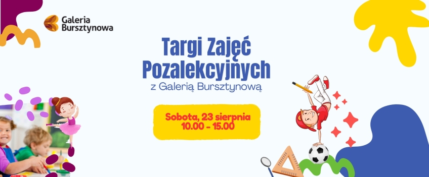 Targi Zajęć Pozalekcyjnych w Galerii Bursztynowej to wydarzenie, które z myślą o rodzicach i dzieciach organizujemy tuż przed rozpoczęciem roku szkolnego. W jednym miejscu będzie można porównać oferty różnych placówek, porozmawiać z instruktorami i zapisać dziecko na zajęcia dodatkowe odpowiadające jego zainteresowaniom.